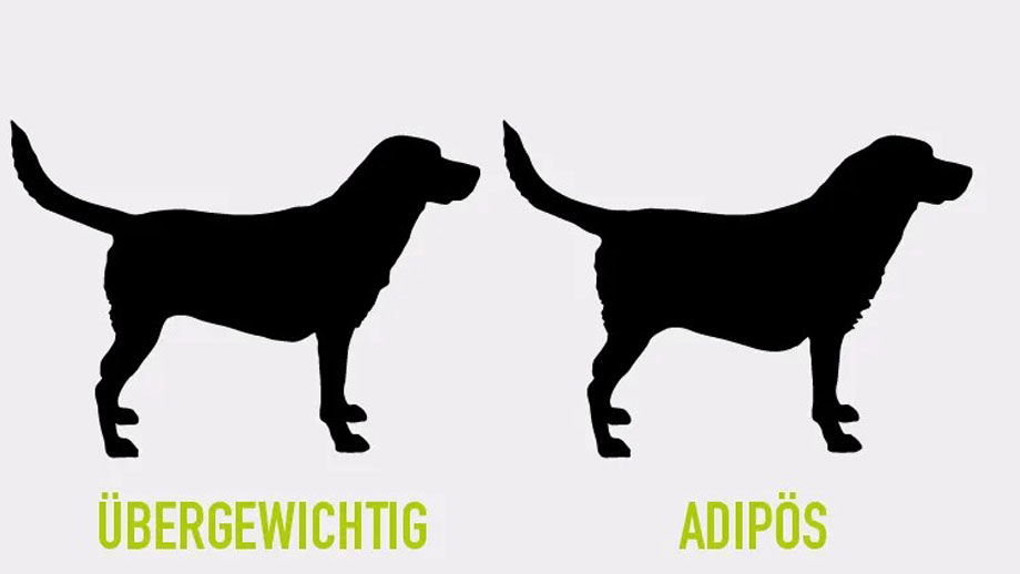 Veterinärmedizinisch gilt ein Hund als übergewichtig, wenn sein Körpergewicht 10–20 % über dem Idealgewicht liegt. Ab einem Überschuss von mehr als 20 % spricht man von Adipositas. Der Unterschied zwischen beiden liegt also vor allem im Ausmaß der Fettansammlungen und den damit verbundenen gesundheitlichen Folgen.
